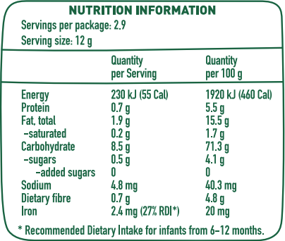 It is our commitment to you that all our organic ingredients, recipes and suppliers have been specially screened and selected to ensure they are appropriate and safe for growing little bellies. The foods we produce are made with carefully selected organic ingredients and grown naturally without the use of synthetic pesticides and fertilisers.